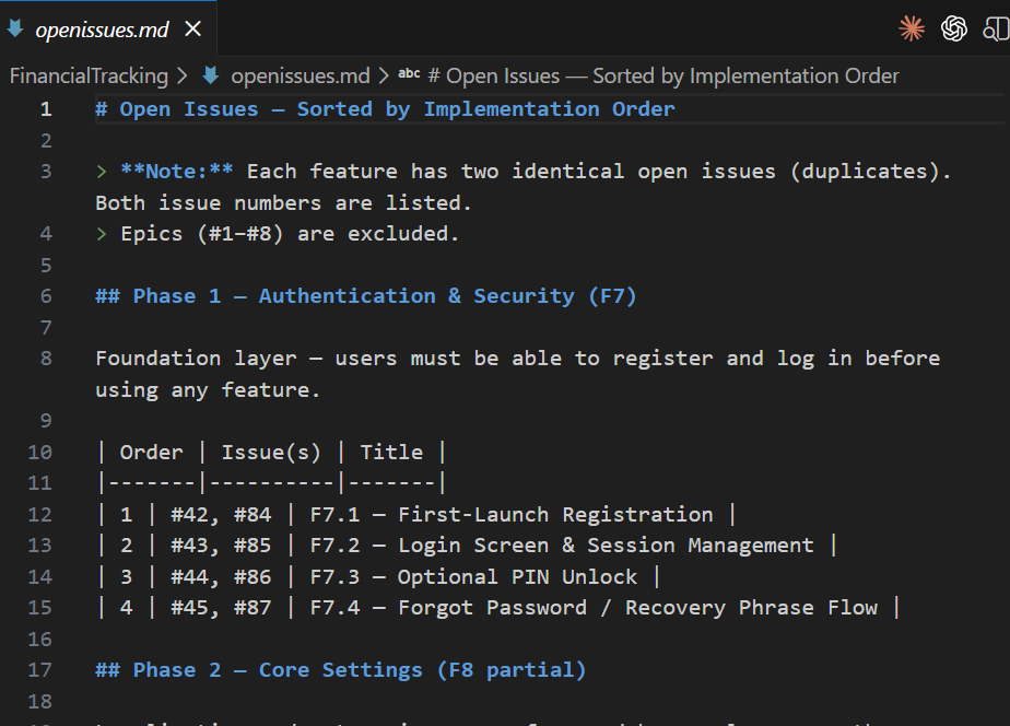 This created an openissues.md file with issues listed as follows: